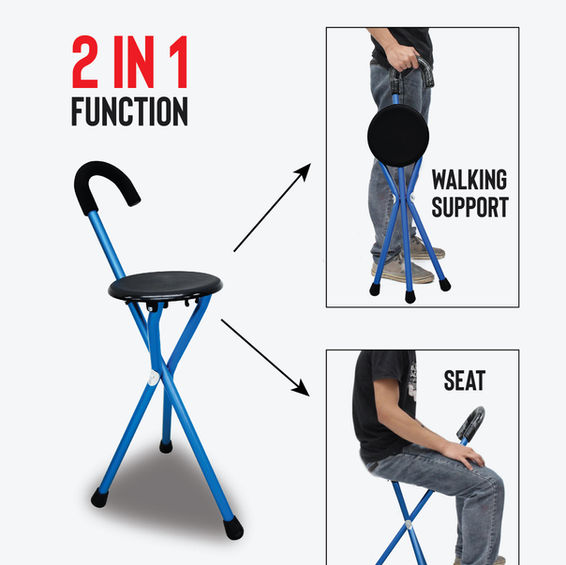 Versatile Use: The tripod cane seat serves a dual purpose, functioning as both a walking support and a comfortable seat, providing versatility for users.