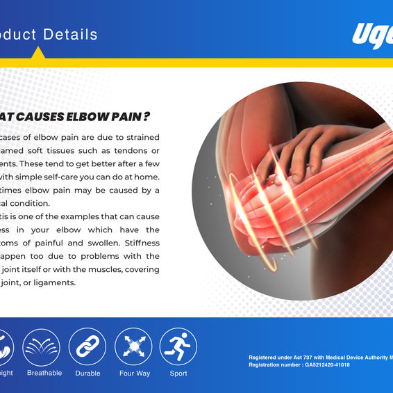 Ugoku Inno-Pattern Elastic Elbow Support provides mild compression and support to elbow which helps relieve pain and swelling. It has elastic functional knitting zones at the elbow area that enhance comfort when in motion. It is ideal for recovery and protection during sport or daily activity.